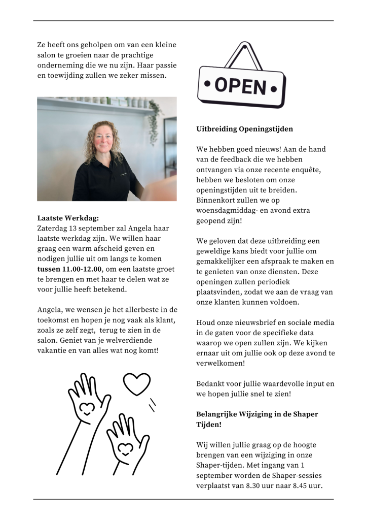 Het is iedere keer fijn. En het is zo netjes hoe de wenkbrauwen weer worden opgepimpt. Bedankt.