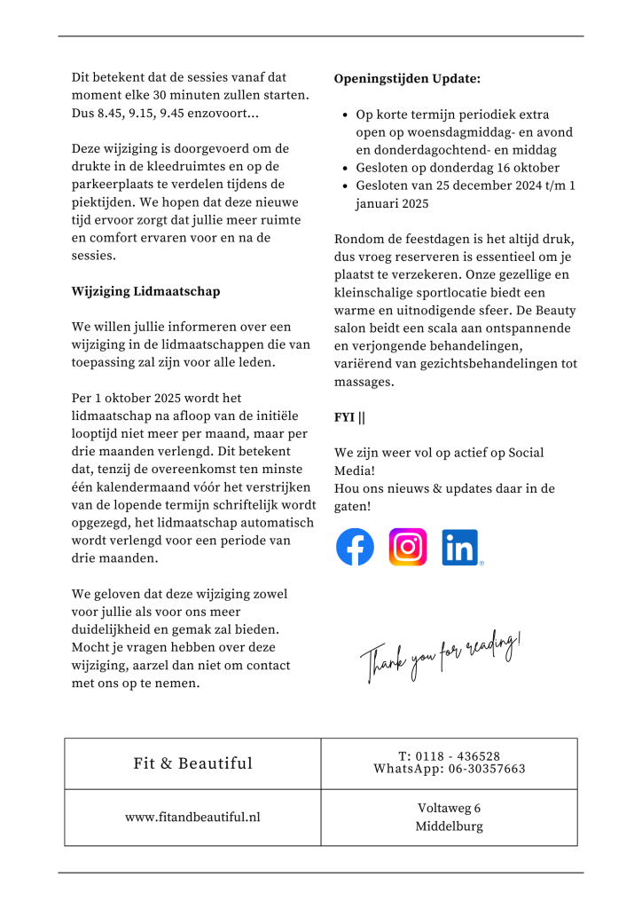 Fantastische medewerkers, behulpzaam en vriendelijk. Makkelijk afspraak maken. En na een half uurtje voel je je heerlijk fit.